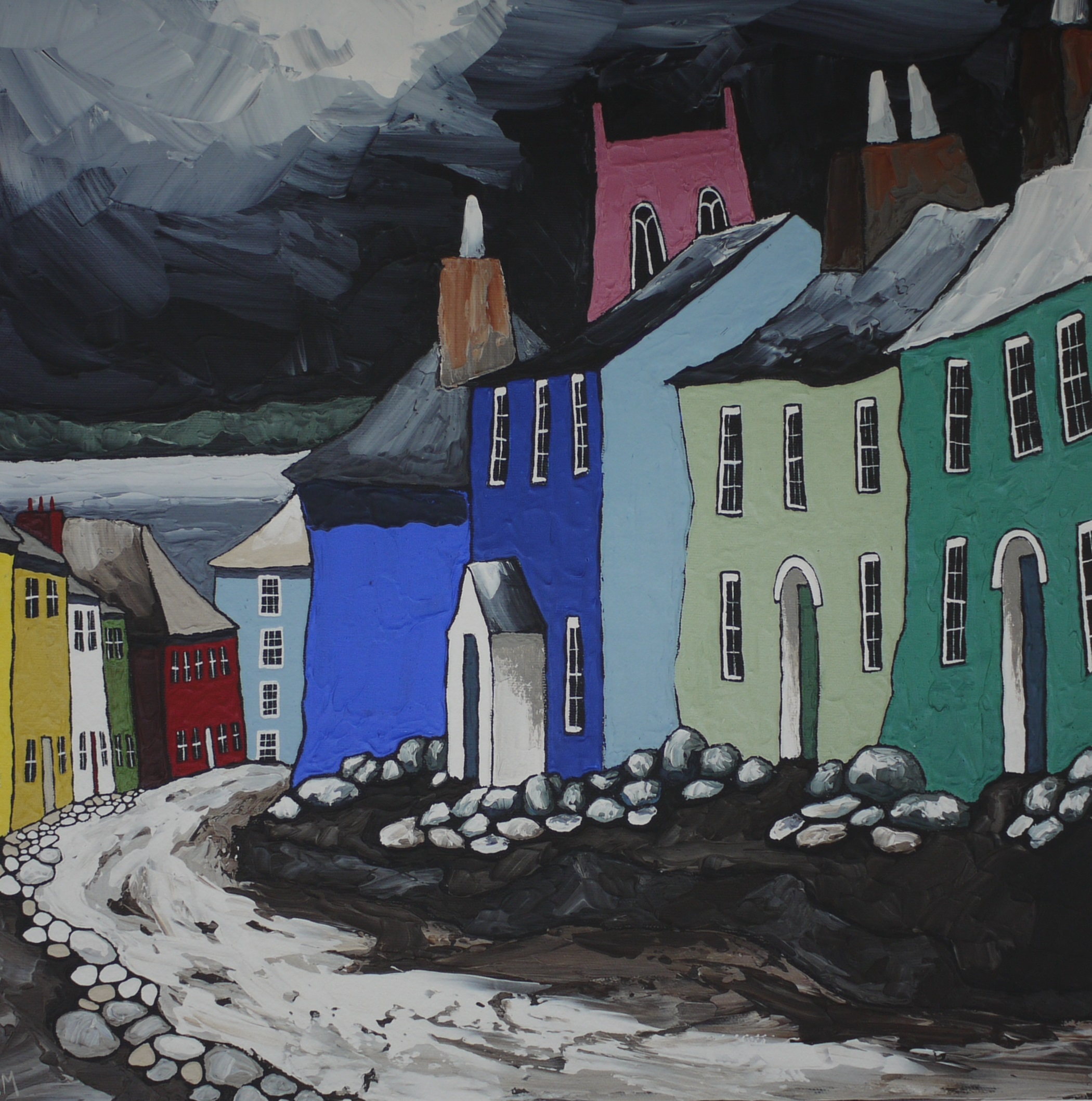Legend has it that the pastel shades of West Wales' harbours are a legacy of the fishermen forefathers of these small communities. Once, as the story has it, fishermen would paint their terrace homes around the dock in varying colours so they could recognise their own as they returned from the sea. No wonder I like to paint these houses, they are so nice.